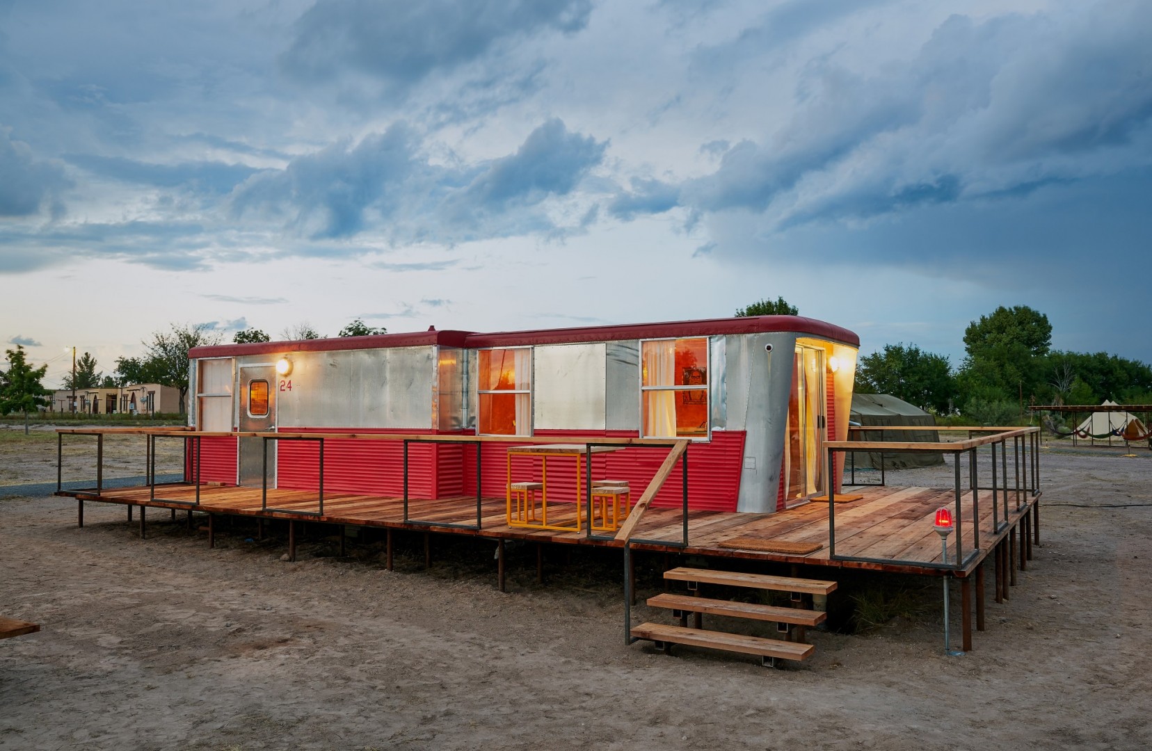 El Cosmico is a 21-acre nomadic hotel in the desert of Marfa, Texas. The campground is set with retro trailers, Sioux-style tepees, Mongolian yurts, and tents where guest can stay. Often hosting spiritual workshops, art and music events including the Trans Pecos Festival this coming September 22-25, 2016. The town has a heavy influence of artist since the 1970’s, its population of 2121 makes it a tranquil destination where visitors can enjoy the art and studios of many of the resident artist that call it their home. One of the most famous sculptures about 26 miles north of the city is ‘Prada Marfa’ a fake shop with real Prada accessories inside by artist Elmgreen and Dragset .