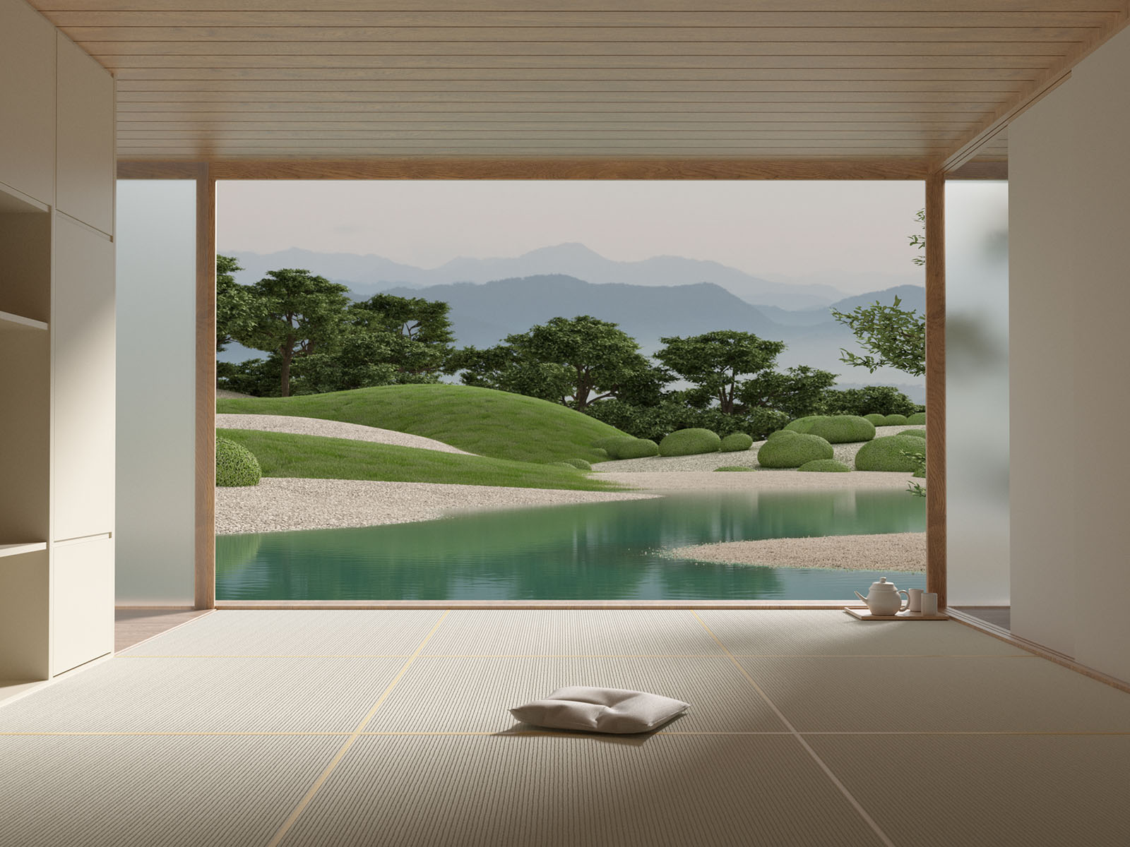 “Our Japanese Garden series comes from visual research of landscapes, objects, spaces that belong to a culture that is not ours but we admire. This external point of view was the key to create something new, adding a new reinterpretation of the mood board we had. Pleasant spaces and harmonic gardens work together as an invitation to relax and meditate.”