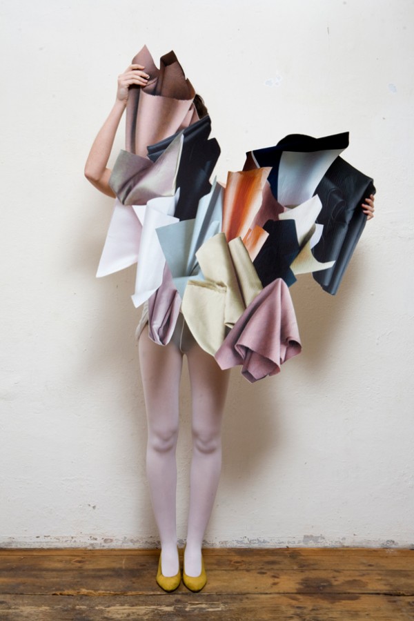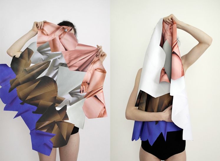 Swiss artist Stéphanie Baechler is inspired by curtains, fabric pleats, plastic bags, wrapped objects and creased blankets. As a starting point for her fabric project Baechler begins with formations, shapes, and material combinations that result from the rather accidental than conscious every day actions. In creating this project she explores paper or fabric installations in 3D, the processing into a two dimensional pieces of fabric and the creation of a textile object that turns into a symbiosis of 3D and 2D.