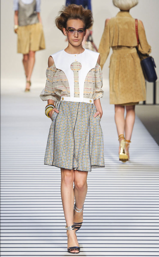 Showing a different side of Italian style—less sexpot, more studious—Karl Lagerfeld mainly stuck to daywear demure this S/S 2012. With the usual Fendi flashes of flesh and fur, of course.