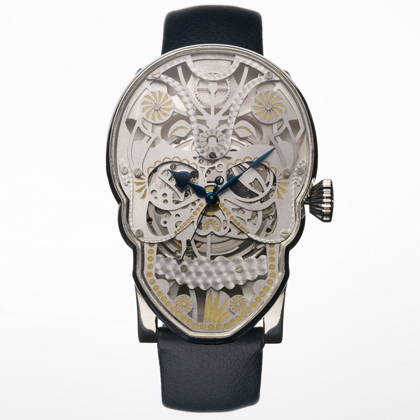 Recent ECAL, University of Arts and Design Lausanne, graduate Fiona Krüger, created an interesting series of watches called “Memento Mori” for her thesis project. The timepiece reinterprets the theme of mortality in watch-making. Memento Mori reinterprets the theme of mortality in horlogery, drawing inspiration from the 17th century skull watch of Mary Queen of Scotts, Mexican Dia de Los Muertos decoration and beautifully decorated skeleton movements found in today’s luxury watches.