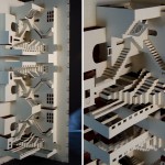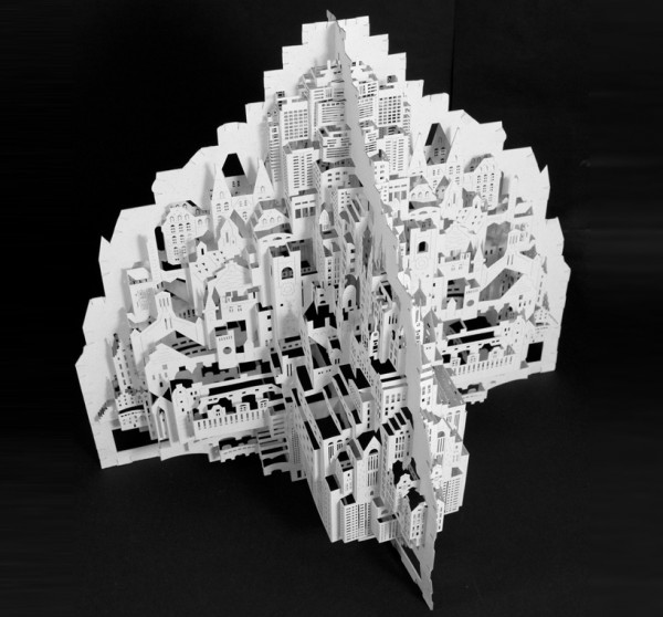 “Working with paper forces me to be humble since this medium has a character of its own that asks for cooperation,” she states. “Working with paper the way I do, namely by means of cutting and folding creating paper sculptures, asks of me to work with meditative precision. Paper architecture does not bare haste, it is its enemy; one moment of loss of concentration, can lead to failure of a piece…”