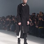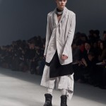 Japanese designer Tatsuro Horikawa for Julius presented a collection that lived in a world of “chaos and tranquility”, with a strong digital sound, punctuated only by a percussion orchestra. The expanded mesh pullovers, leather jackets and dresses were done in a very neutral pallette. The atmosphere was cold and a little gaunt – from another world, intangible, unreal and futuristic.