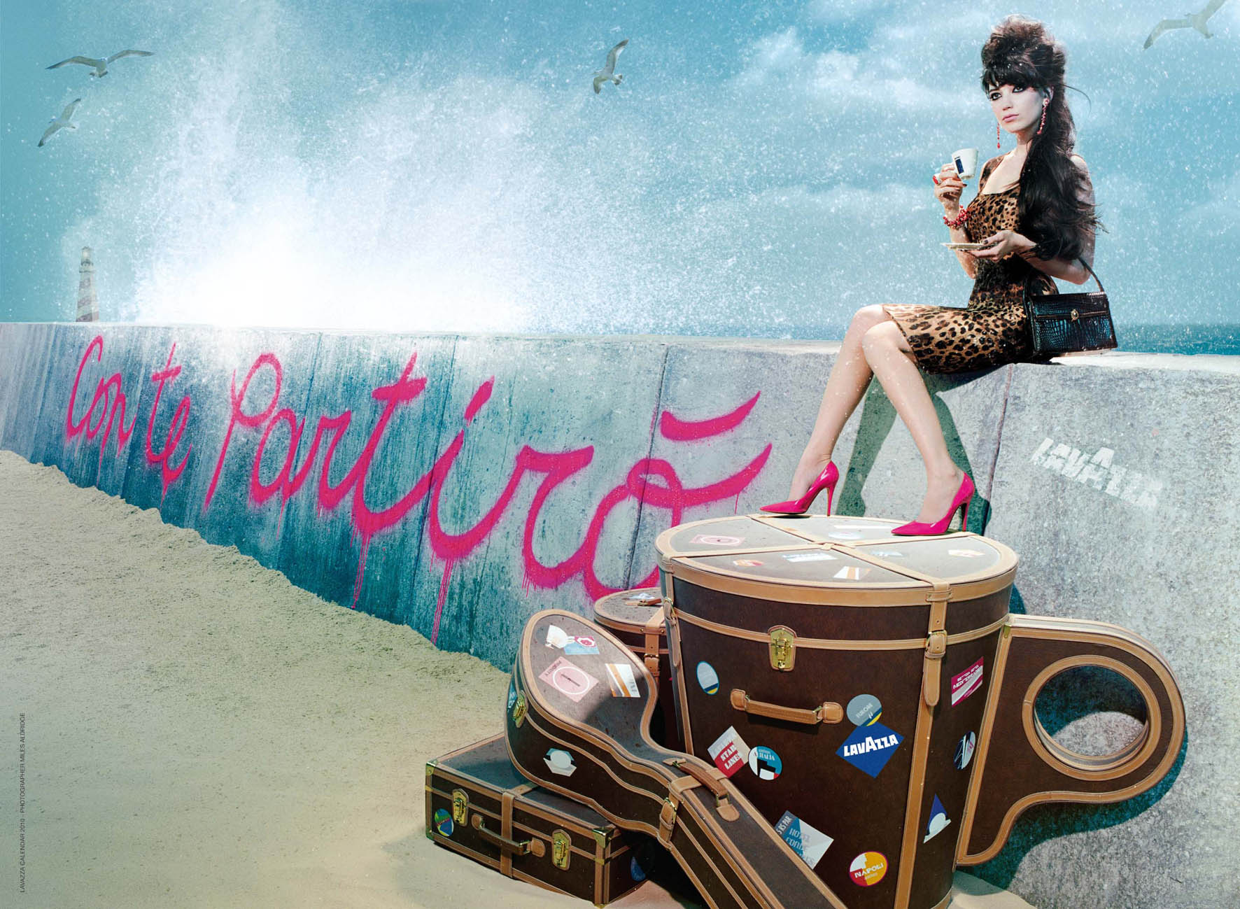We always Love, Love the Lavazza Calendars (and Campaigns) – This year, Lavazza contacted us and offered us the Hi-res pictures, in exclusivity, of their beautiful 2010 Calendar. Including models like Daisy Lowe, Georgia Frost and Lydia Hearst, the 2010 calendar is another colorful and huge production signed by Miles Aldridge, of course!