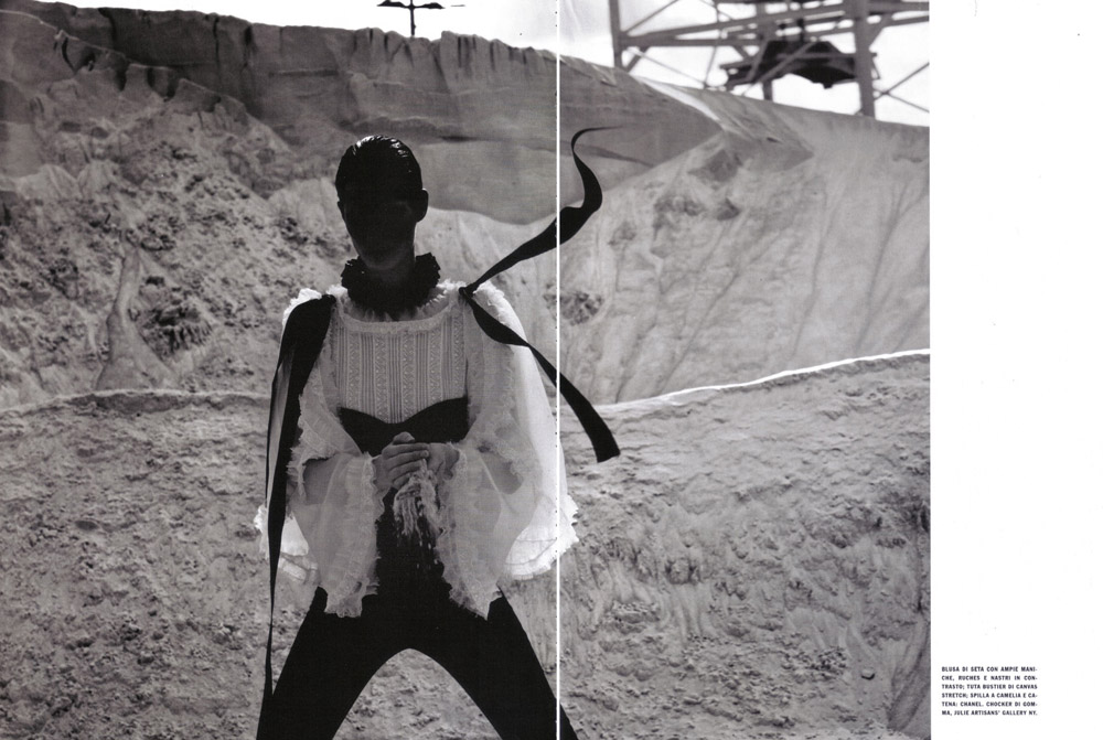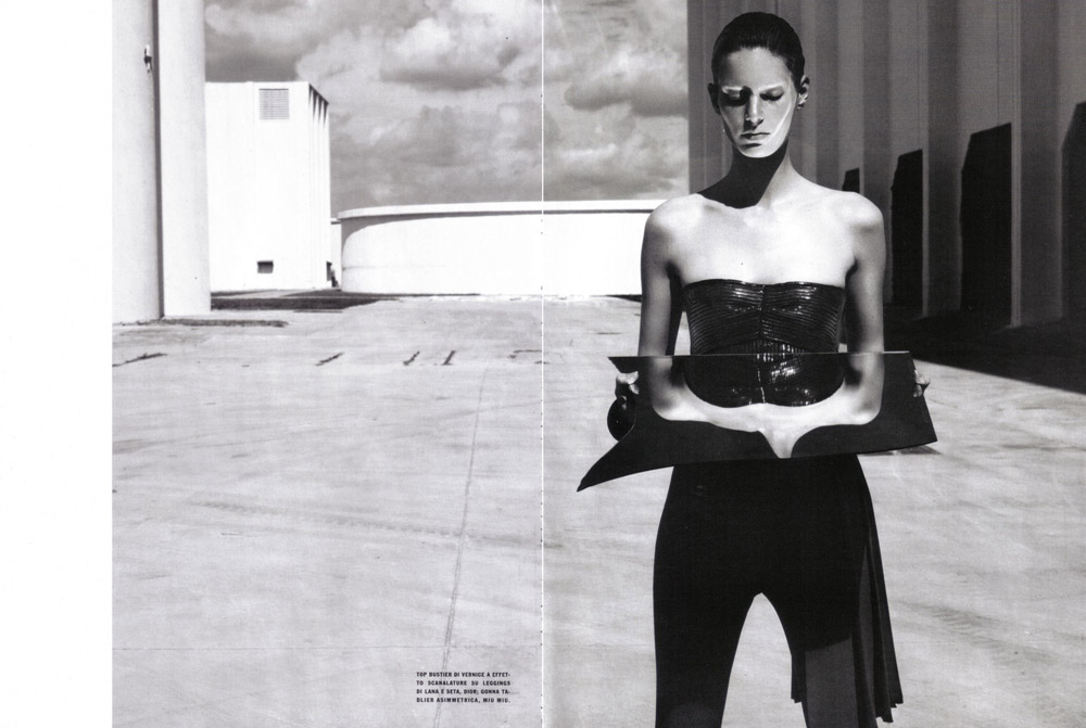 Share Next Shape black & white editorial shot by Mert & Marcus featuring model Iris Strubegger for Vogue Italia’s March 09. Shapes and futuristic goodness, me likey ! Thanks Diacassette @ TSF for the scans