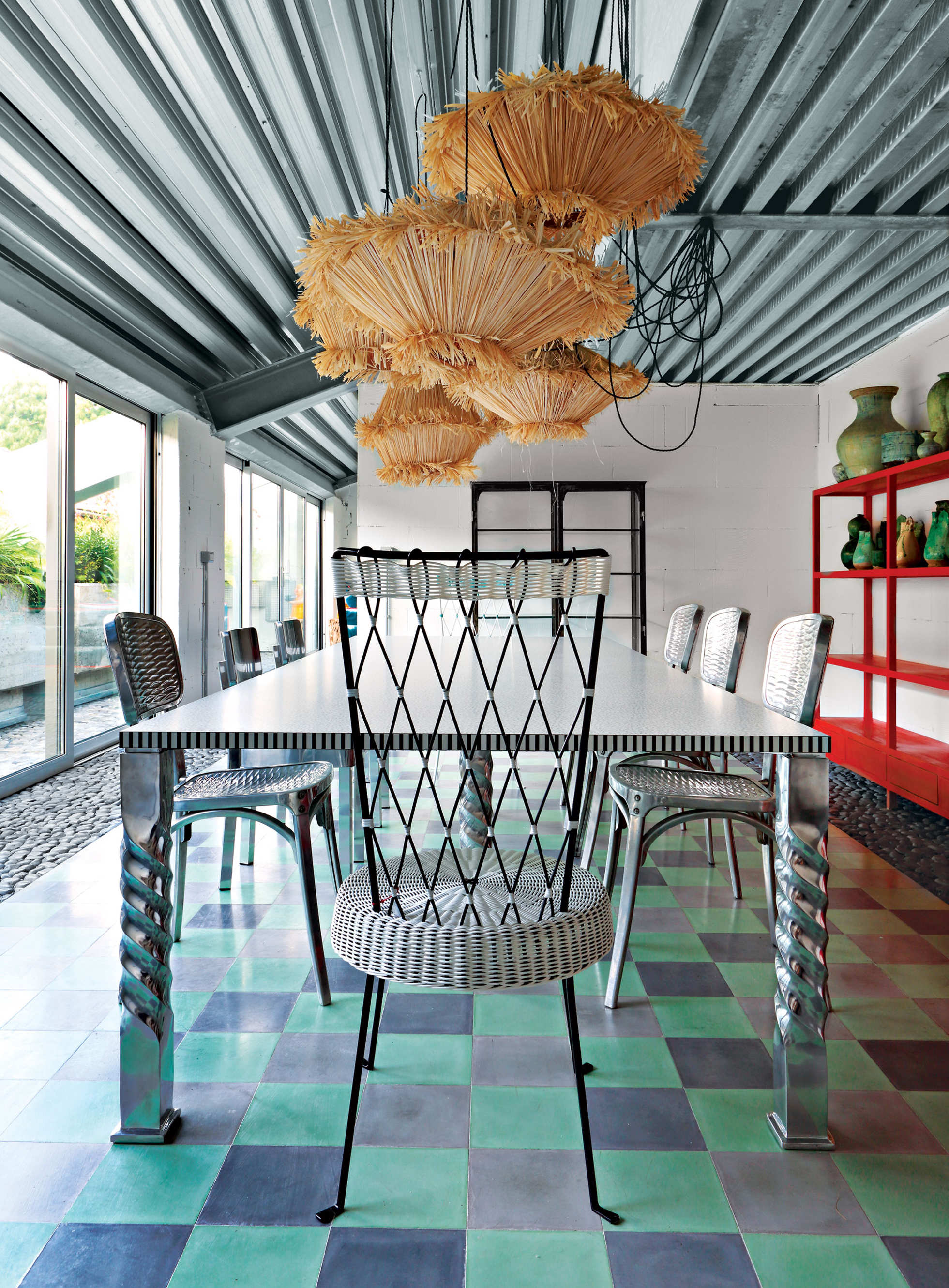 In the center of Milan, in Via Tortona, the iconic architect and interior designer Paola Navone has reserved herself the top floor of this renovated factory who’s hosting her offices. “I wanted to let live and preserve the unfinished look of rough walls. “If the light and air circulate freely, the city noise does not penetrate. “It is a very light place”, she explains.
