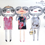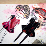 Artist Roland Robinson was sketching around with this style of illustration in his Moleskin for awhile before he came up with the concept of creating Follicle Girl collections. Originally the girls had no bodies but he eventually decided to give them bodies and create origami wardrobes for them.