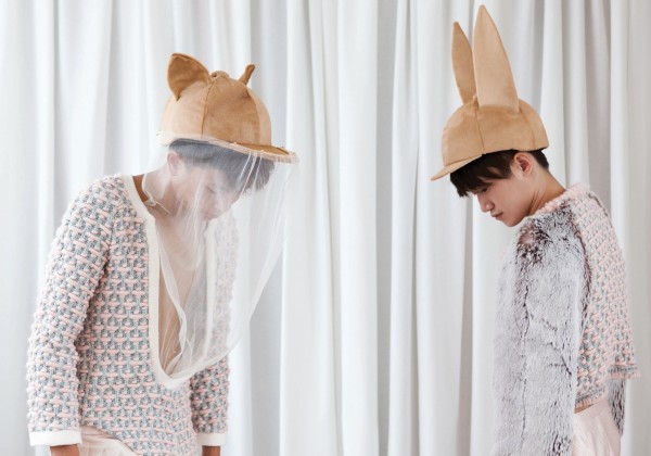 “I’m confused, I’m sitting here on the sofa, the heart my boyfriend drew on the mirror is still there, my heart in a rice cooker. I think I’ll marry him again at lunch. My cat is sleeping but it’s already been four days. Well, I have to go to the supermarket anyway. Guess technology isn’t ready for pancake teleportation.” On this diary entry, designer and Royal Academy in Antwerp graduate, Niels Peeraer, based his collection “Guess technology isn’t ready for pancake teleportation”.