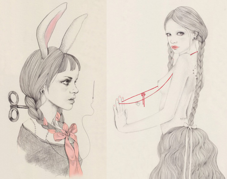Share With a very Japanese style, Yukari Terakado illustrations are hip and fresh. Working mostly in acrylics and colored pencils, Yukari uses seductive lines to create intricate patterns and stunning forms. I love how she draws hairs! See more on her Flickr